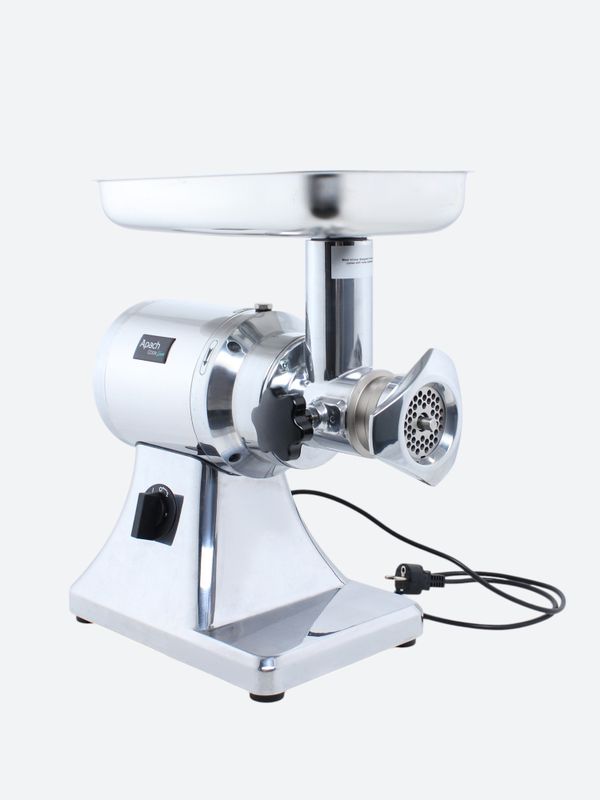 Мясорубка Apach Cook Line ATS12U предназначена для измельчения мяса и рыбы в фарш, измельчения котлетной массы и набивки колбас на предприятиях общественного питания и торговли. Модель оснащена усиленным редуктором и вентилируемым асинхронным двигателем с защитой от перегрузок. Ножи, лоток и горловина выполнены из нержавеющей стали, мясорубочная часть - из пищевого чугуна, толкатель - из ABS пластика.
