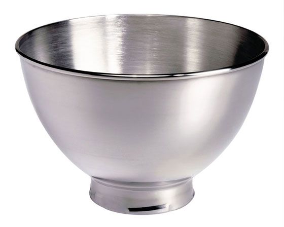 В комплекте венчик, лопатка, крюк, чаша 4.83 л с матовым покрытием, чаша без ручки 3 л и защитный обод.