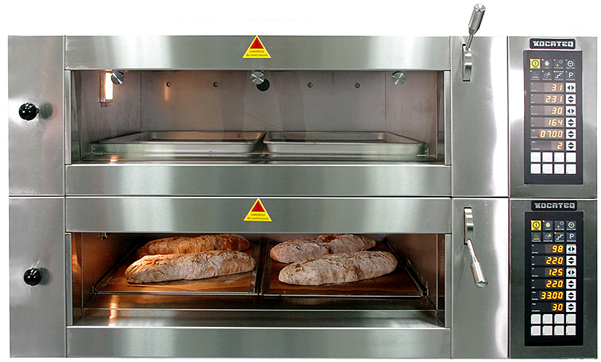 Печь Kocateq EBO 64x2 ST2 P2 предназначена для выпечки хлеба, пиццы и кондитерских изделий на предприятиях общественного питания, торговли и пищевых производствах. Модель оборудована парогенератором-термоблоком, электронной панелью управления и подсветкой. Материал корпуса - нержавеющая сталь Aisi 430, внутренней камеры - алюминий, пода - керамика.