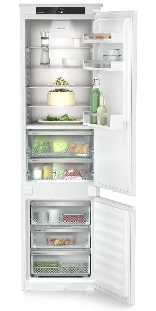 Встраиваемый холодильник Liebherr ICBNSd 5623-20 001 BioFresh NoFrost XL используется для заморозки, охлаждения и длительного хранения продуктов питания и полуфабрикатов на предприятиях общественного питания, торговли и пищевых производствах. Модель оснащена сенсорным управлением, жидкокристаллическим дисплеем, функциями BioFresh и NoFrost, автоматической разморозка, 11 полками и регулируемыми ножками.Материал корпуса - окрашенная сталь, материал полок - стекло и решетка.