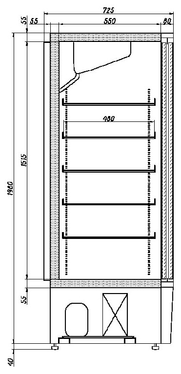 Холодильный шкаф Ариада R1400 VC линии Рапсодия предназначен для демонстрации, охлаждения и кратковременного хранения скоропортящихся продуктов и напитков на предприятиях торговли и общественного питания. Нижнее расположение агрегата является более выгодным с точки зрения мерчандайзинга в отличие от верхнего, позволяет более выгодно выложить товар, а клиенту не наклоняться за товаром на нижнюю полку. Эксплуатация оборудования допускается при температуре окружающей среды от 12 до 32 °C.