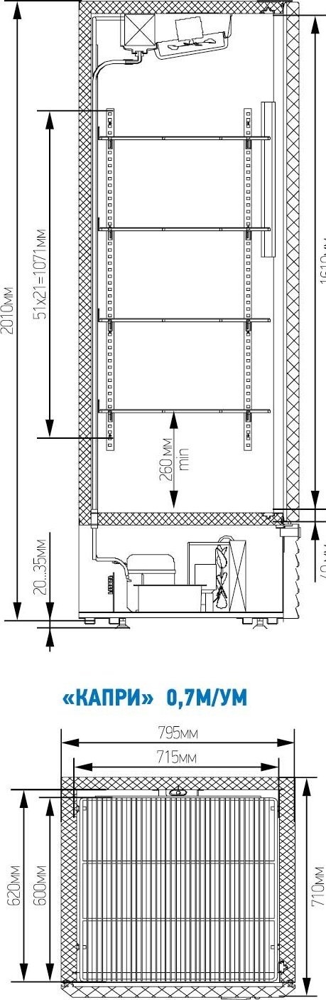 Холодильный шкаф Марихолодмаш Капри 0,7 М предназначен для охлаждения и кратковременного хранения скоропортящихся продуктов и напитков на предприятиях общественного питания и торговли. Корпус выполнен из нержавеющей стали с пенополиуретановым заполнением.