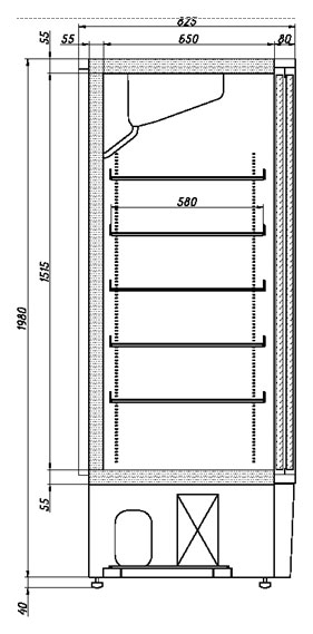 Холодильный шкаф Ариада R1520 MС линии Рапсодия предназначен для демонстрации, охлаждения и кратковременного хранения скоропортящихся продуктов и напитков на предприятиях торговли и общественного питания. Нижнее расположение агрегата является более выгодным с точки зрения мерчандайзинга в отличие от верхнего, позволяет более выгодно выложить товар, а клиенту не наклоняться за товаром на нижнюю полку. Цельнозаливной корпус с толщиной стенки 55 мм облицован оцинкованной, грунтованной сталью с полимерным покрытием. Эксплуатация оборудования допускается при температуре окружающей среды от 12 до 32 °C.