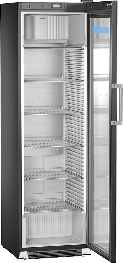 Холодильный шкаф Liebherr FKDv 4523 предназначен для охлаждения и кратковременного хранения скоропортящихся продуктов и напитков на предприятиях общественного питания и торговли. Модель оснащена электронным кнопочным управлением и цифровой индикацией температуры. Внутренняя прокладка выполнена из серебристой пластмассы, боковые стенки - из стали, дверь - из тонированного стеклопакета, решетки - из металла с порошковым покрытием, ручка - из алюминия, ножки - из нержавеющей стали.