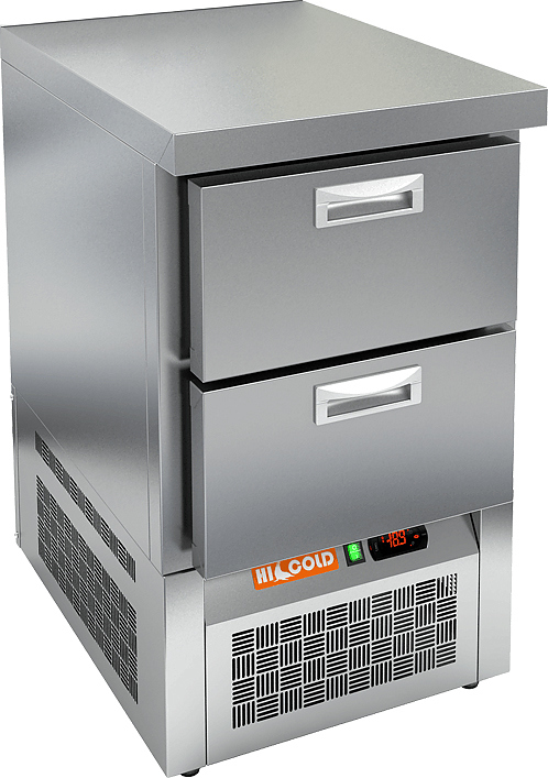 Холодильный стол HICOLD GNE 2/TN O используется на предприятиях общественного питания, торговли и пищевых производствах для обработки различных ингредиентов и хранения продуктов, напитков и кухонных принадлежностей. Модель оснащена электронной панелью управления, динамической системой охлаждения, автоматической оттайкой, ящиками и регулируемыми ножками. Материал корпуса и столешницы - высококачественная нержавеющая сталь.