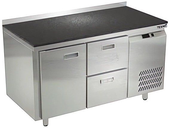 Холодильный стол Техно-ТТ СПБ/О-422/12-1307 предназначается для раскатки теста, обработки, охлаждения и кратковременного хранения продуктов и напитков на предприятиях общественного питания, торговли и пищевых производствах. Секции оснащены направляющими и ящиками с доводчиками. Материал корпуса - нержавеющая сталь AISI 430, материал столешницы - гранит (толщина 20 мм), материал задней панели и дна - оцинкованная сталь.