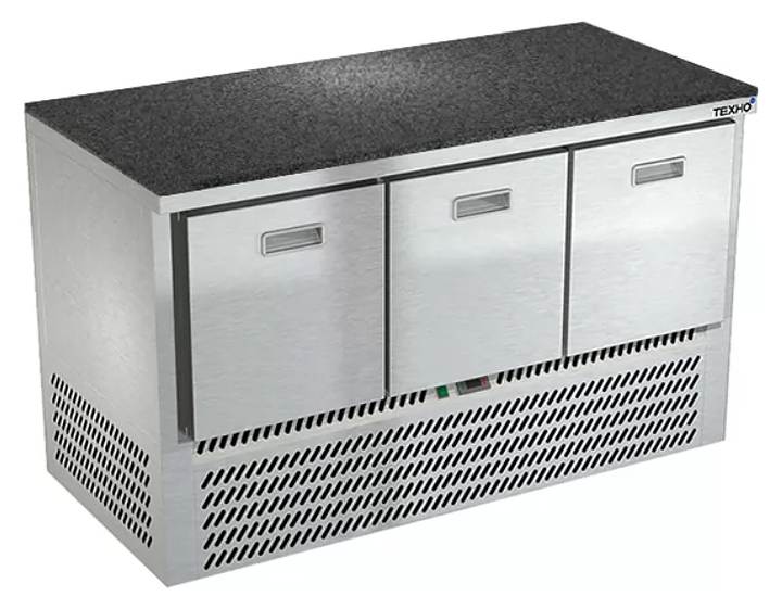 Холодильный стол Техно-ТТ СПН/О-323/03-1406 предназначается для раскатки теста, обработки, охлаждения и кратковременного хранения продуктов и напитков на предприятиях общественного питания, торговли и пищевых производствах. Секции оснащены направляющими и ящиками с доводчиками. Материал корпуса - нержавеющая сталь AISI 430, материал столешницы - гранит (толщина 20 мм), материал задней панели и дна - оцинкованная сталь.
