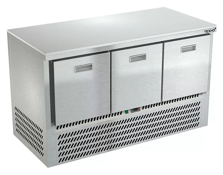 Холодильный стол Техно-ТТ СПН/О-523/03-1407 предназначается для раскатки теста, обработки, охлаждения и кратковременного хранения продуктов и напитков на предприятиях общественного питания, торговли и пищевых производствах. Секции оснащены направляющими и ящиками с доводчиками. Материал корпуса - нержавеющая сталь AISI 430, материал столешницы - полипропилен (толщина 20 мм), материал задней панели и дна - оцинкованная сталь.