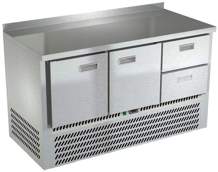 Холодильный стол Техно-ТТ СПН/О-222/22-1907 предназначается для раскатки теста, обработки, охлаждения и кратковременного хранения продуктов и напитков на предприятиях общественного питания, торговли и пищевых производствах. Секции оснащены направляющими и ящиками с доводчиками. Материал корпуса и столешницы - нержавеющая сталь AISI 430, материал задней панели и дна - оцинкованная сталь.