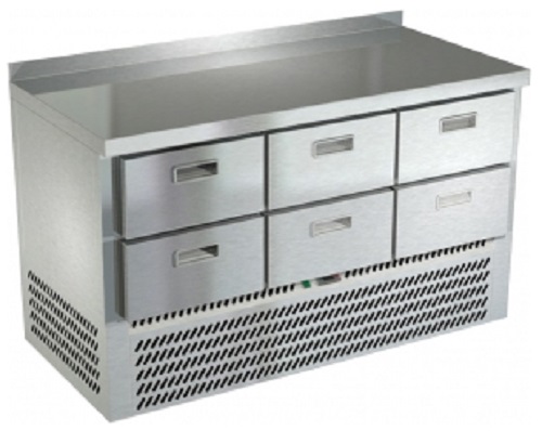 Холодильный стол Техно-ТТ СПН/О-223/06-1407 предназначается для раскатки теста, обработки, охлаждения и кратковременного хранения продуктов и напитков на предприятиях общественного питания, торговли и пищевых производствах. Секции оснащены направляющими и ящиками с доводчиками. Материал корпуса и столешницы - нержавеющая сталь AISI 430, материал задней панели и дна - оцинкованная сталь.