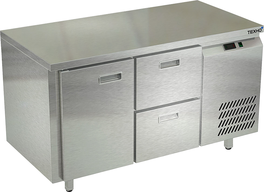 Холодильный стол Техно-ТТ СПБ/Т-122/12-1307 предназначается для раскатки теста, обработки продуктов и ингредиентов, заморозки и хранения продукции, а также для размещения теплового оборудования на предприятиях общественного питания, торговли и пищевых производствах. Двери оснащены доводчиками. Материал корпуса и столешницы - нержавеющая сталь AISI 430, материал дна и задней панели - оцинкованная сталь.
