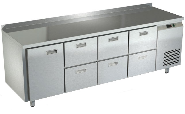 Холодильный стол Техно-ТТ СПБ/О-222/16-2207 предназначен для раскатки теста, обработки, охлаждения и кратковременного хранения продуктов и напитков на предприятиях общественного питания и торговли. Модель оснащена компрессором АСС (Италия), секция - направляющими и сетчатой полкой, дверь и ящики - доводчиками. Корпус выполнен из нержавеющей стали, задняя стенка - из оцинкованной стали.