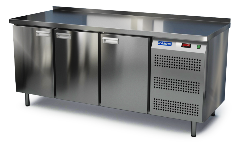 Холодильный стол КАМИК СО-301858 используется на предприятиях общественного питания и торговли для охлаждения и хранения продуктов, напитков и готовых блюд. Конструкция разделена на секции, каждая из которых оборудована сетчатой полкой и парой направляющих. Корпус выполнен из нержавеющей стали AISI 430 толщиной 1 мм, столешница - из нержавеющей стали AISI 304 толщиной 1,5 мм.