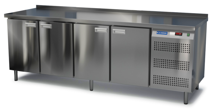 Холодильный стол КАМИК СО-44237 используется на предприятиях общественного питания и торговли для охлаждения и хранения продуктов, напитков и готовых блюд. Конструкция разделена на секции, каждая из которых оборудована сетчатой полкой и парой направляющих. Корпус выполнен из нержавеющей стали AISI 430 толщиной 1 мм, столешница - из нержавеющей стали AISI 304 толщиной 1,5 мм.