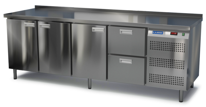 Холодильный стол КАМИК СО-32238 используется на предприятиях общественного питания и торговли для охлаждения и хранения продуктов, напитков и готовых блюд. Конструкция разделена на секции, каждая из которых оборудована сетчатой полкой и парой направляющих. Корпус выполнен из нержавеющей стали AISI 430 толщиной 1 мм, столешница - из нержавеющей стали AISI 304 толщиной 1,5 мм.