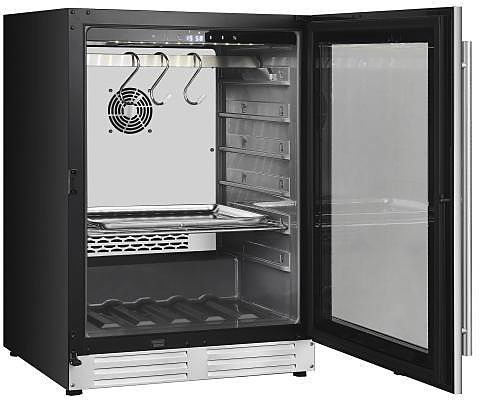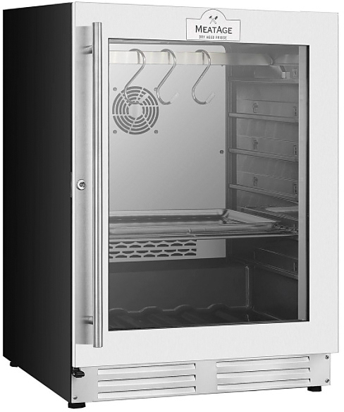 Шкаф для мяса MeatAge VI60 предназначается для охлаждения и вызревания мяса, ветчины и салями на предприятиях общественного питания и торговли, пищевых производствах, отелях, офисах, а также в домашнем использовании. Шкаф оснащен белой LED подсветкой внутреннего объема, тачпадом с подсветкой, акустической сигнализацией и запираемой дверью. Материал корпуса и комплектующих - нержавеющая сталь AISI 304, материал двери - ударопрочное закаленное стекло.