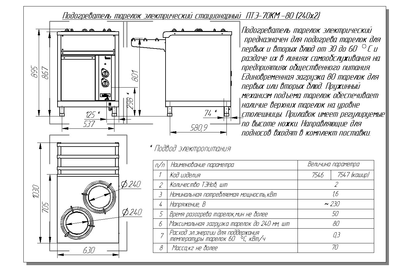 Прилавок для подогрева тарелок Abat ПТЭ-70КМ-80 предназначен для подготовки посуды к последующему использованию и поддержания в теплом состоянии в составе линий раздач на предприятиях общественного питания и торговли. Модель оснащена пружинным механизмом кассетницы, которая производит автоматический подъем тарелок по мере их использования и регулируемыми по высоте ножками..
