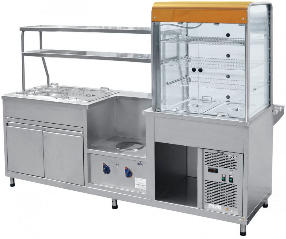 - Двойная полка над мармитом с подсветкой для выкладки блюд