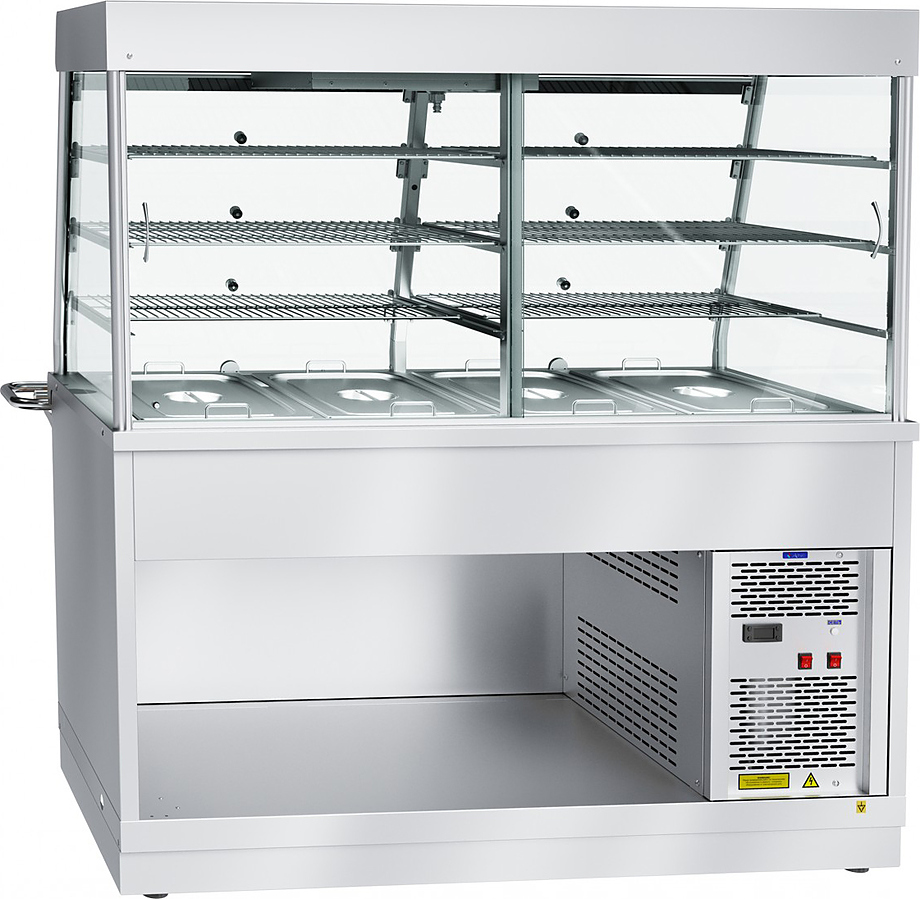 Холодильная витрина Abat ПВВ(Н)-70Х-С-02-НШ используется на предприятиях общественного питания и торговли для кратковременного хранения, демонстрации и раздачи холодных закусок, третьих блюд и охлажденных напитков потребителю. Модель оснащена 3 вместительными полками и охлаждаемой столешницей. Корпус и панели выполнены из нержавеющей стали.