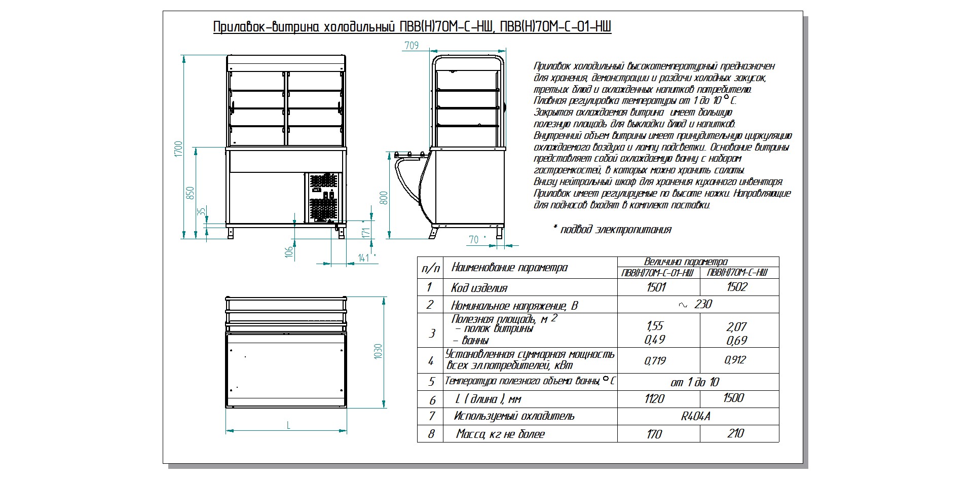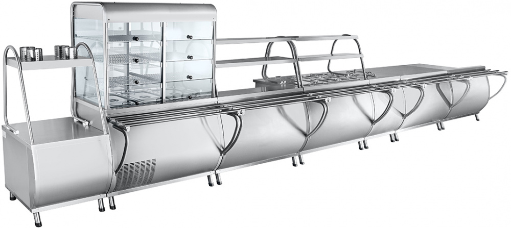 Прилавок-витрина Abat ПВВ(Н)-70М-С-01-НШ предназначен для демонстрации, охлаждения, кратковременного хранения блюд, холодных закусок и напитков в составе линий раздач на предприятиях общественного питания и торговли. Модель оснащена регулируемыми по высоте ножками.