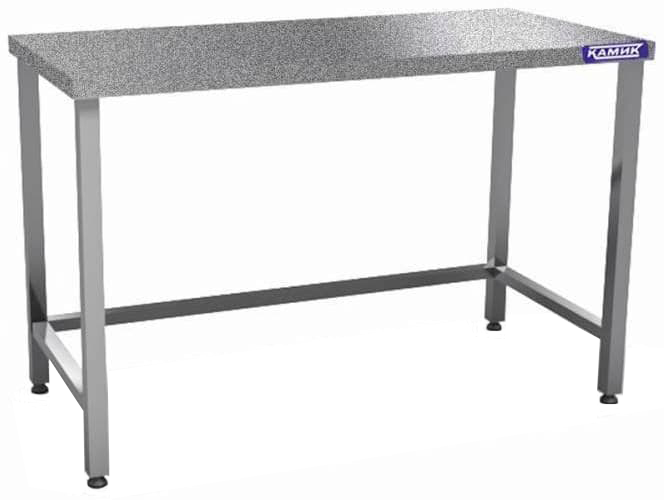 Кондитерский стол КАМИК С-К-4137 используется на предприятиях общественного питания и торговли для работы с тестом и приготовления кондитерских изделий. Модель имеет обвязку ног с трех сторон. Каркас стола выполнен из нержавеющей стали AISI 430, столешница - гранит толщиной 20мм. Ножки - труба 40х40 мм.