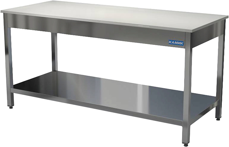Разделочный стол КАМИК С-СПР-4148+П используется на предприятиях общественного питания и торговли для разделки и приготовления различных блюд. Каркас стола выполнен из нержавеющей стали AISI 430, столешница - полипропилен толщиной 20мм. Ножки - труба 40х40 мм.