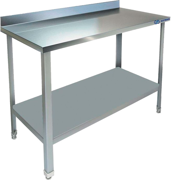 Производственный стол KAYMAN СП-242/0606 используется на предприятиях общественного питания и торговли для раскатки теста и обработки ингредиентов для приготовления блюд, а также как дополнительное место для установки и хранения кухонных приборов, инвентаря и сухих продуктов. Каркас выполнен из уголка нержавеющей стали AISI430, столешница - из нержавеющей стали AISI 430, усиленной листом ЛДСП толщиной 16 мм.