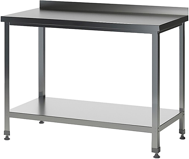 Производственный стол Astropit АСРБ-13070-УОПО используется на предприятиях общественного питания, торговли и пищевых производствах для раскатки теста, приготовления различных блюд и хранения кухонных принадлежностей. Материал рабочей поверхности – нержавеющая сталь AISI 430, материал сплошной полки – оцинкованная сталь, полка усилена листом ДСП (толщина 16мм).