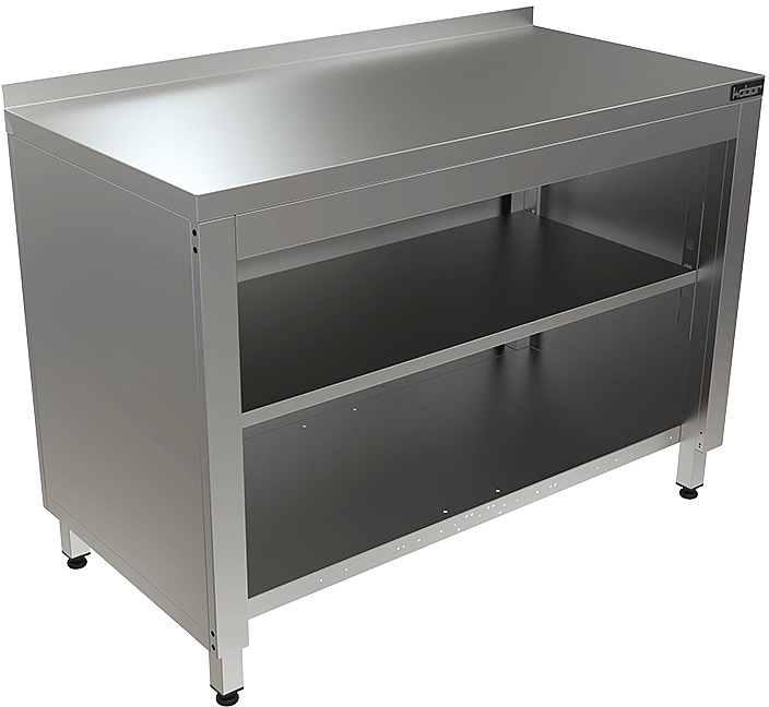 Стол производственный Кобор СТБ-150/70/О используется на предприятиях общественного питания, торговли и пищевых производствах для хранения кухонной утвари и обработки различных ингредиентов перед приготовлением. Материал каркаса - высококачественная нержавеющая сталь (труба 40х40 мм), материал столешницы - высококачественная нержавеющая сталь AISI 430, усиленная листом ЛДСП (толщина 16 мм).