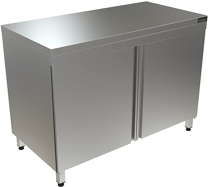 Стол производственный Кобор СТ-150/60/Р используется на предприятиях общественного питания, торговли и пищевых производствах для хранения кухонной утвари и обработки различных ингредиентов перед приготовлением. Материал каркаса - высококачественная нержавеющая сталь (труба 40х40 мм), материал столешницы - высококачественная нержавеющая сталь AISI 430, усиленная листом ЛДСП (толщина 16 мм).