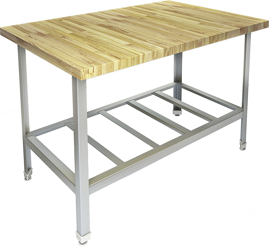 Кондитерский стол Техно-ТТ СП-359/1608 предназначен для раскатки теста и обработки ингредиентов для приготовления кондитерских и хлебобулочных изделий, а также для расстановки и хранения посуды и кухонного инвентаря на предприятиях общественного питания, торговли и пищевых производствах. Модель оснащена регулируемыми по высоте ножками, что позволяет компенсировать неровности пола. Материал разборного каркаса - уголок (40x40 мм) из нержавеющей стали AISI 430, материал полки-решетки - нержавеющая сталь AISI 430, материал столешницы - бук.