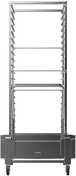 Тележка-шпилька Tecnoeka EKCR 20 TC используется совместно с пароконвектоматами MKF 2011 S, MKF 2011 TS, MKF 2011 BM, EKF 2011 TC и EKF 2011 UD для хранения и транспортировки кондитерских противней, гастроемкостей и подносов с пищевыми продуктами и кондитерскими изделиями на предприятиях общественного питания, торговли и пищевых производствах. Модель со съемной ручкой и колесами с тормозами. Материал изготовления - высококачественная нержавеющая сталь.