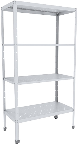 Стеллаж Пищевые Технологии СКК-12/6 СНК-П серии Стандарт используется на предприятиях общественного питания, торговли и пищевых производствах для хранения различной посуды, кухонного инвентаря и сухих продуктов. Ножки регулируются по высоте для компенсации неровности пола. Полки - перфорированные (толщина 0.8 мм), профиль ножек - уголок (38x38 мм, толщина 1.5 мм). Материал каркаса и полок - высококачественная нержавеющая сталь AISI 430.