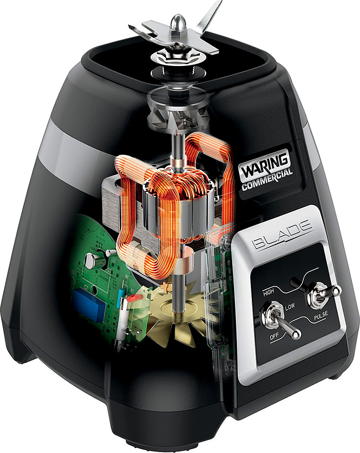 Кухонный блендер Waring BB340S серии Blade используется на предприятиях общественного питания, торговли, пищевых производствах и в домашних условиях для приготовления коктейлей со льдом, супов-пюре, паштетов, перемешивания и измельчения фруктов и овощей. Материал корпуса - ABS-пластик, материал четырехлопастного ножа - закаленная нержавеющая сталь.
