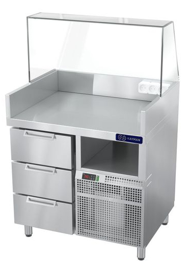 Станция для бургеров и хот-догов KAYMAN СП-БХ-900-02-ЛБ А используется на предприятиях общественного питания, торговли и пищевых для производствах с целью комплексного оснащения места для приготовления и продажи хот-догов и бургеров, а также хранения охлажденных полуфабрикатов, начинок, соусов и хлебобулочных изделий. Возможность установки на столешницу комбинированного гриля КГЭ-7-Н А, КГЭ-6-Н А, КГЭ-7-УС А, гриля контактного ГКЭ-1-Р-Ч А, ГКЭ-1-Р А, ГКЭ-1-Г А, ГКЭ-1-2Г А или гриля роликового ГР-1-5 А с подставкой ПГР-1-5 А. Материал станции - нержавеющая сталь.