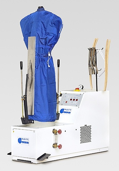 Пароманекен Ghidini Majestic A используется на предприятиях, в отелях, прачечных , химчистках для финишной обработки одежды. Модель оснащена микропроцессором, автоматическими циклами работы, таймерами, парогенератором, автоматической подачей воды, вентилятором и автоконтролем давления.