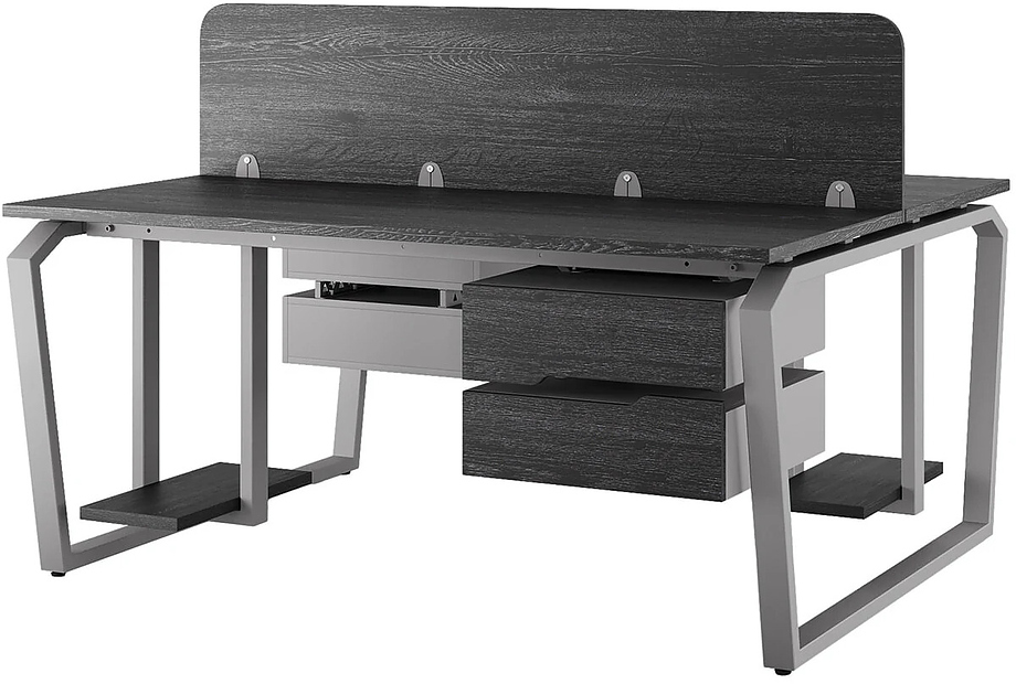Офисный стол Кобор TB/2-80/120 aluminum/wood предназначен для двух рабочих мест и идеально подходит для офисов и кабинетов руководителей. Модель оснащена опорами в виде обратной трапеции с скошенными верхними углами. Материал столешницы - прочный ЛДСП толщиной 25 мм, усиленная снизу металлическим каркасом, материал опор и каркаса - окрашенный металл.