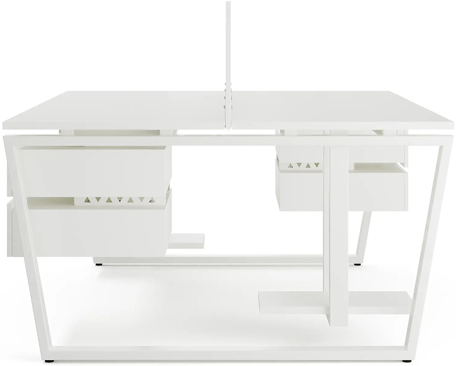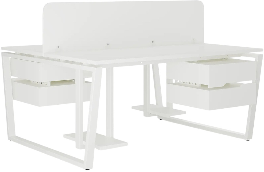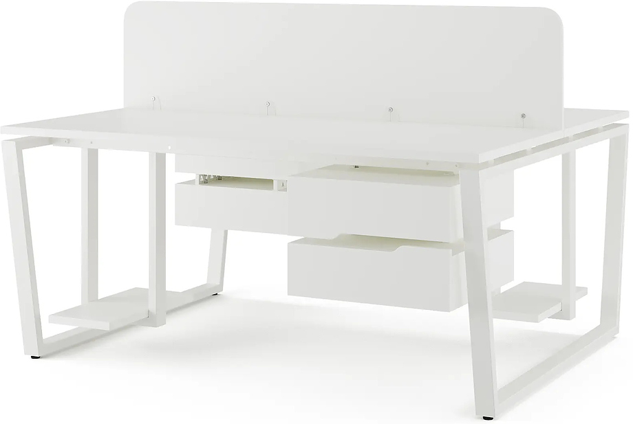 Офисный стол Кобор OTR/2-80/120 white/premium предназначен для двух рабочих мест и идеально подходит для офисов и кабинетов руководителей. Модель оснащена опорами в виде обратной трапеции. Материал столешницы - прочный ЛДСП толщиной 25 мм, усиленная снизу металлическим каркасом, материал опор и каркаса - окрашенный металл.