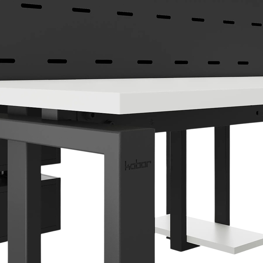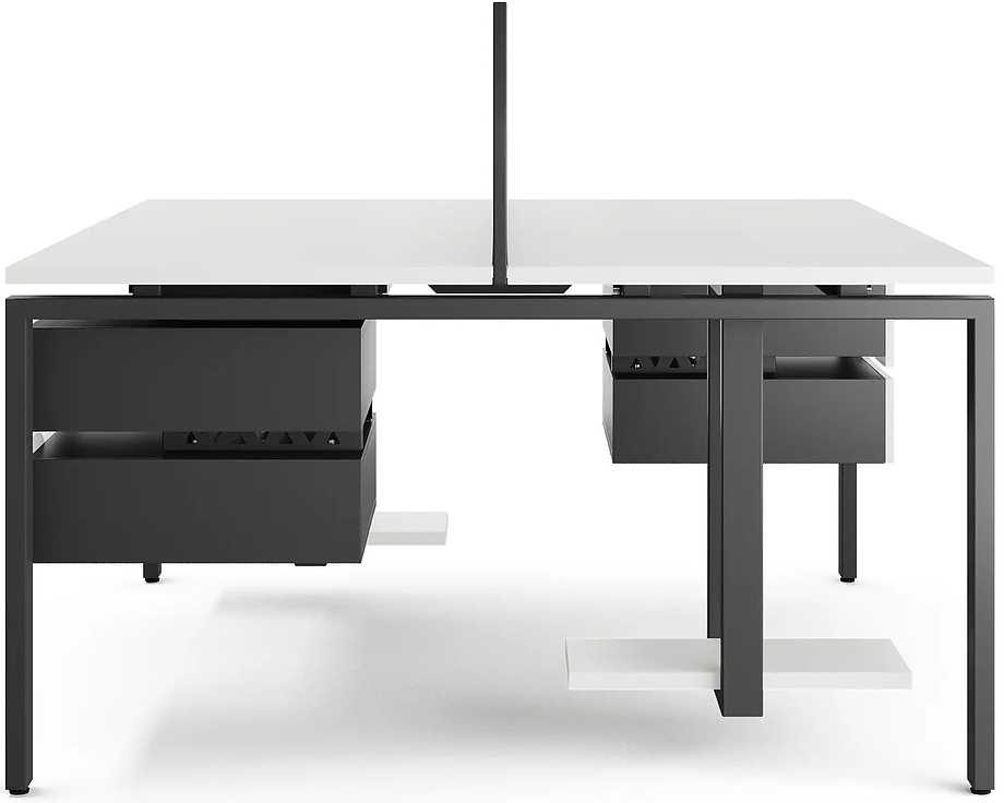 Офисный стол Кобор P/2-140/140 black/premium предназначен для двух рабочих мест и идеально подходит для офисов и кабинетов руководителей. Модель оснащена П-образными опорами. Материал столешницы - прочный ЛДСП толщиной 25 мм, усиленная снизу металлическим каркасом, материал опор и каркаса - окрашенный металл.
