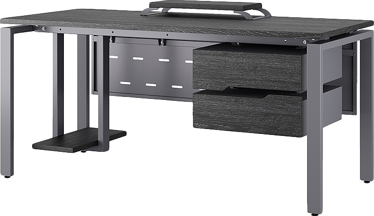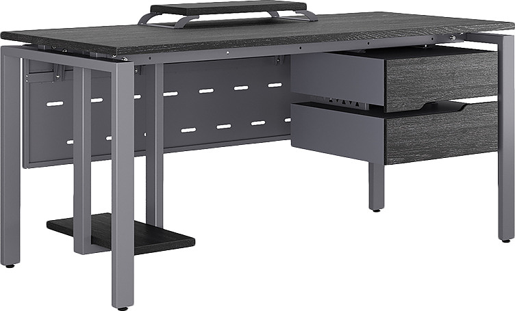 Офисный стол КОБОР P-140/70 graphite/wood используется в офисных помещениях и кабинетах руководителей. Модель оснащена П-образными опорами. Материал столешницы - прочный ЛДСП толщиной 25 мм, усиленная снизу металлическим каркасом, материал опор и каркаса - окрашенный металл.