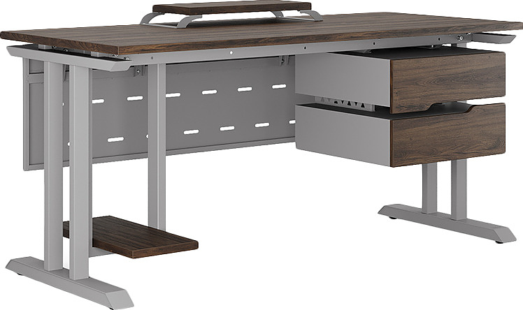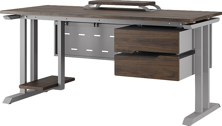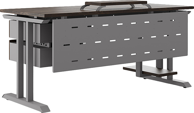 Офисный стол КОБОР T-120/60 aluminum/charlston используется в офисных помещениях и кабинетах руководителей. Модель оснащена Т-образными опорами. Материал столешницы - прочный ЛДСП толщиной 25 мм, усиленная снизу металлическим каркасом, материал опор - окрашенный металл.