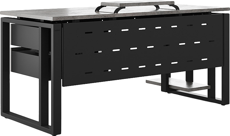 Офисный стол КОБОР O2-120/60 black/chicago используется в офисных помещениях и кабинетах руководителей. Модель оснащена О-образными опорами и усиленной вертикальной балкой. Материал столешницы - прочный ЛДСП толщиной 25 мм, усиленная снизу металлическим каркасом, материал опор - окрашенный металл.