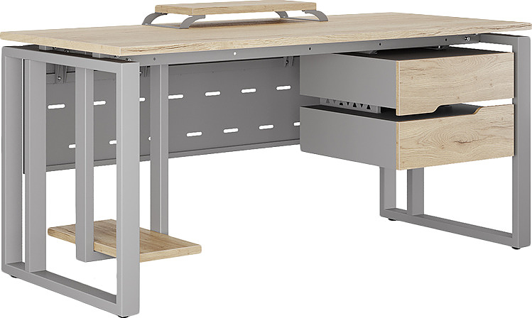 Офисный стол КОБОР O2-140/70 aluminum/natural используется в офисных помещениях и кабинетах руководителей. Модель оснащена О-образными опорами и усиленной вертикальной балкой. Материал столешницы - прочный ЛДСП толщиной 25 мм, усиленная снизу металлическим каркасом, материал опор - окрашенный металл.