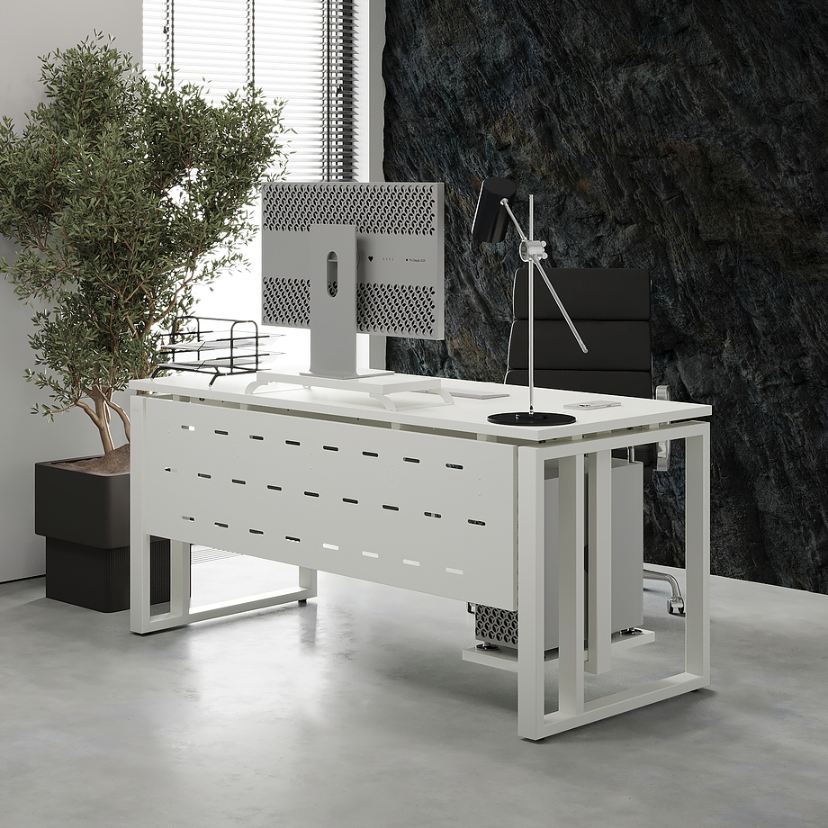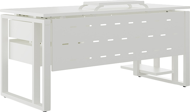 Офисный стол КОБОР O2-140/70 white/premium используется в офисных помещениях и кабинетах руководителей. Модель оснащена О-образными опорами и усиленной вертикальной балкой. Материал столешницы - прочный ЛДСП толщиной 25 мм, усиленная снизу металлическим каркасом, материал опор - окрашенный металл.