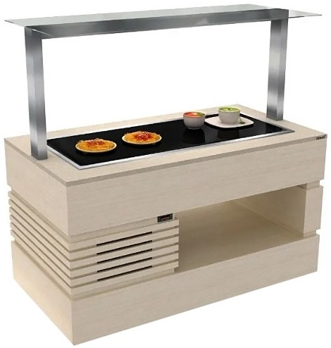 Буфет с подогреваемой столешницей Техно-ТТ БПС-221/1286 используется на предприятиях общественного питания и торговли для выкладки, подогрева и раздачи горячих блюд. Каркас - оцинкованная сталь, фасад выполнен из шпона и МДФ, столешница изготовлена из искусственного камня. В модели предусмотрена открытая полка с подсветкой и ящик.