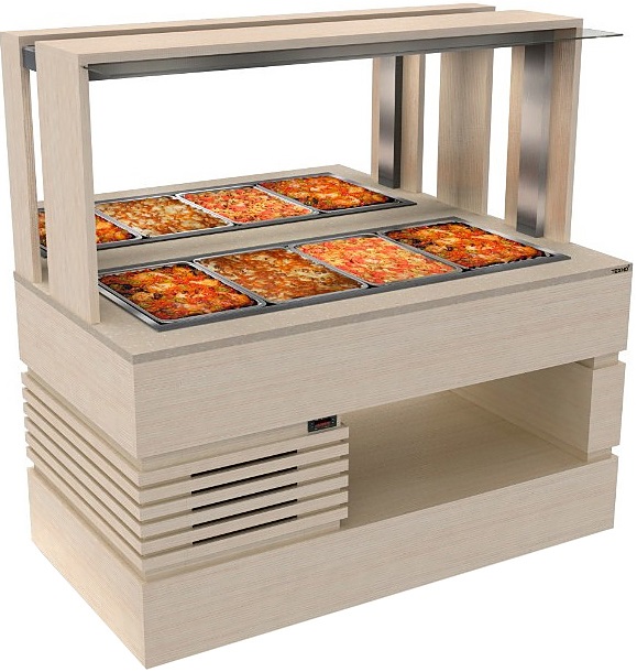 Техно-ТТ БМВ-213/1286 используется на предприятиях общественного питания и торговли для выкладки, хранения и раздачи продуктов. Каркас - оцинкованная сталь, фасад выполнен из шпона и МДФ, столешница изготовлена из искусственного камня. В модели предусмотрена ниша.