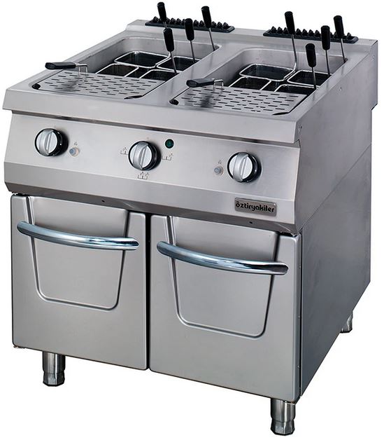 Макароноварка OZTI OMG 4090 используется на предприятиях общественного питания, торговли и пищевых производствах для варки макаронных изделий, овощей, морепродуктов, изделий из теста, гарниров и других продуктов. Модель оснащена механическим управлением, термостатом, аварийным устройством в случае затухания пламени, конфорками с микроперфорацией, краном и емкостью для слива воды. Материал корпуса и конфорок - высококачественная нержавеющая сталь, материал цельнотянутой емкости - высококачественная нержавеющая сталь AISI 316.
