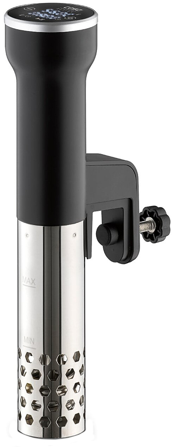 Аппарат Sous Vide CASO SV 400 используется на предприятиях общественного питания, торговли, пищевых производствах и в домашних условиях для приготовления пищи в герметичных пакетах, погружённых в горячую воду при низких температурах, что помогает сохранить питательные вещества, витамины и минералы, а также обеспечивает яркий вкус мяса и овощей. Модель оснащена сенсорным управлением, таймером и световым индикатором. Материал корпуса - высококачественная нержавеющая сталь.