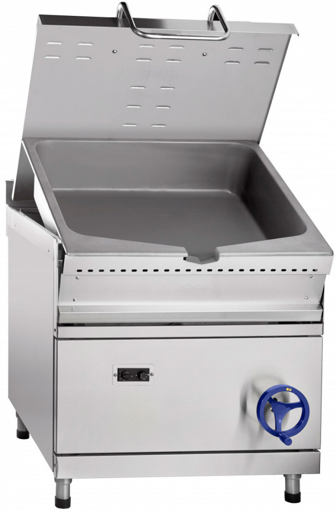 Опрокидывающаяся сковорода Abat ГСК-90-0,47-70 предназначена для приготовления мяса, рыбы, овощей и других продуктов методом жарки, тушения, припускания, пассерования, приготовления на пару и во фритюре на предприятиях общественного питания и торговли. Модель оснащена цельнотянутой сварной чашей, газ-контролем, пьезорозжигом, фиксацией ручки крышки в любом положении и регулируемыми по высоте ножками.