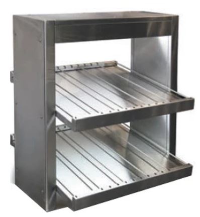 Витрина тепловая RoboLabs ПП2-065/5.5 используется для хранения и демонстрации упакованных продуктов. Оборудование оснащено 2 наклонными полками, на каждой из которой установлены терморегулятор и подсветка. Полки выполнены из нержавеющей стали.